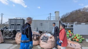 4月1日、藤原・天下両県議と歌川七ヶ浜町議は、重油流出により出荷停止となった七ヶ浜支所のノリの被害について聞き取りを行いました。